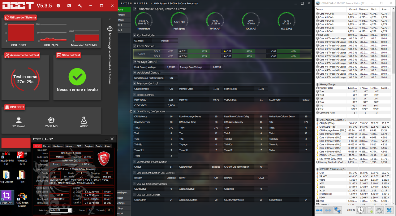 Carico EDC CPU del 73%, ampiamente dentro i valori massimi dell' architettura La cosa più bella dei Ryzen 3000 è che i VRM della mobo non scaldano per nulla (41 gradi)...col 1600x, stesso test e stesso vcore stavo a 20 gradi in più sui MOS (60 gradi)..infatti dal case adesso non esce neanche aria calda. Ottimo davvero.
