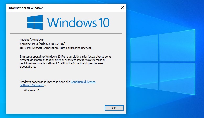 September 26, 2019—KB4517211 (OS Build 18362.387) Se vuoi vai su WU e fai l' aggiornamento . Prima come sempre, farsi il Backup su hd esterno, sempre, sempre, sempre.....