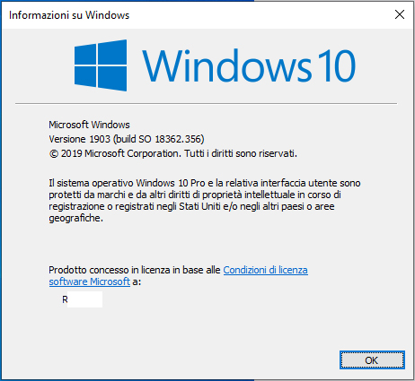 Sì, scusate, nel mio primo post avevo dimenticato di specificare che si tratta di una versione enterprise e non gradivo l'aggiornamento direttamente ad una versione 1903.