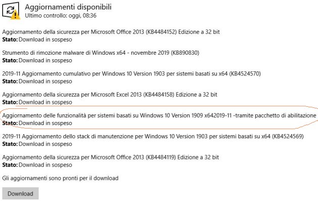 Una volta fatto al riavvio scarica e installa il KB che "sblocca" la 1909. Per farla breve, ci mette di più con la scansione del piffero (e/o installazioni a vuoto) del MRT che a portare la 1903 > 1909