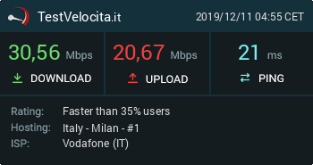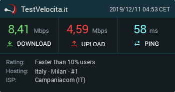 Icaro è leggermente migliorato: ora va come una vecchia adsl, ma con ping peggiore. ![]() Mentre Ho.mobile mi da grandi soddisfazioni. ![]() Ps: metto anche lo speed test di Ho.mobile prima che qualche idiota attribuisca le scarse prestazioni di Icaro al servizio di test speed. Ultima modifica di Dvd810 : 11-12-2019 alle 05:31. |