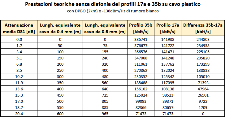 ![]() Puoi basarti su tabelle tipo questa (postata sul thread di TIM), prendendo come riferimento l'attenuazione in banda DS1 mostrata dal tuo modem (nel tuo caso 2,8 dB). Quote: