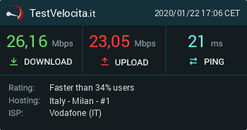 VDSL Fastweb [VULA] 26/7. Distanza ARL ~1,2 km VDSL Vodafone [MAKE] 98/21. Distanza ARL ~100 m Twitch |