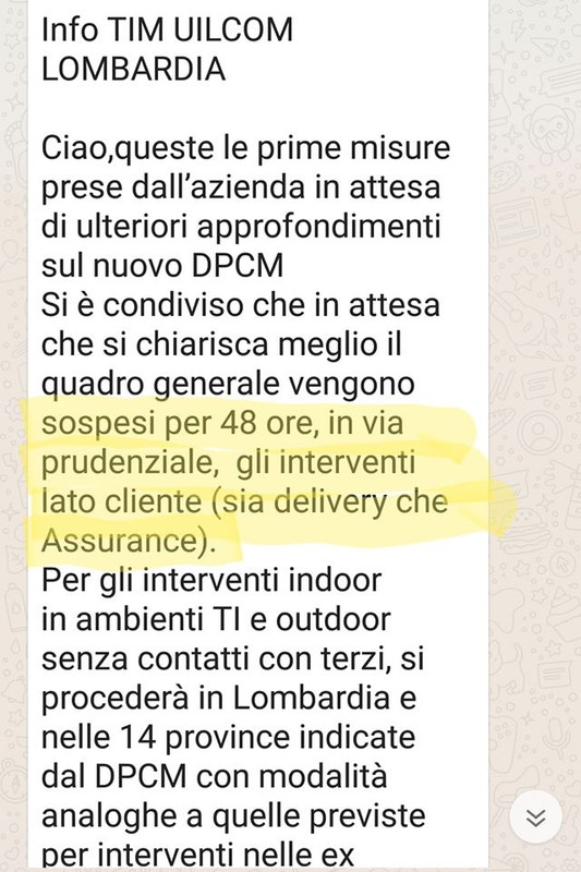 In Lombardia sospese per 48 ore tutte le lavorazioni tecniche (riparazioni guasti + attivazioni linee):