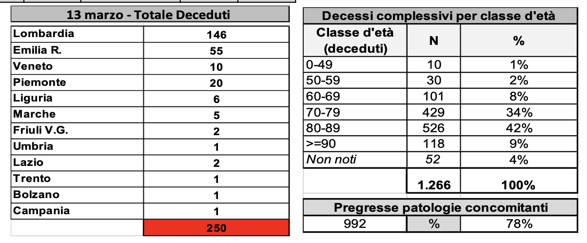 l'età media dei deceduti è di 80 anni tra (se ho capito bene non ha specificato quanti) i casi analizzati dall'iss per conferma delle cause del decesso, ad ora solo 2 risultano privi di altre patologie