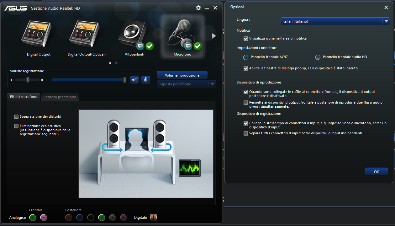 In ogni caso quel pannello non serve, devi usare i pannelli del controllo audio di windows