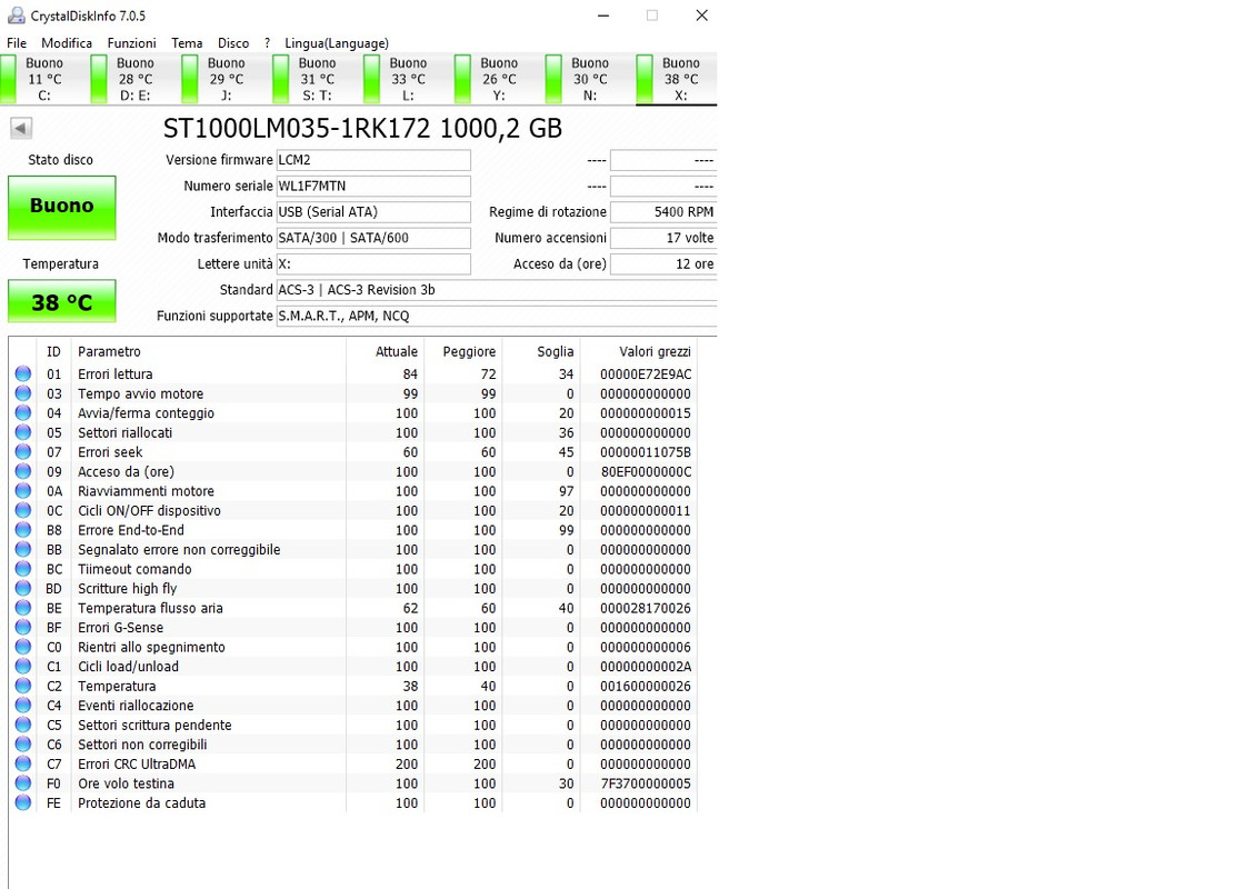 quel valore soglia è la prima volta che lo vedo a 10 è anche vero che non ho altri hdd toshiba quindi puo' essere che sia la prassi del costruttore. che voi sappiate è normale? fatto sta che ci sto copiando delle cose per ora va bene, magari essendo storage non sarà molto sollecitato |