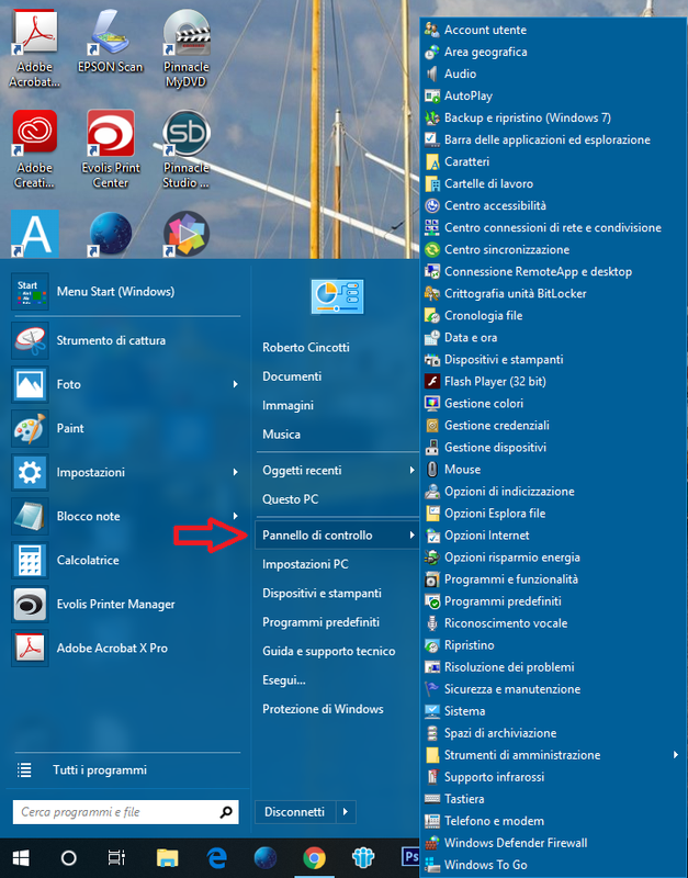 L' icona o collegamento come nome ha > Tutti gli elementi del Pannello di controllo - collegamento Se vuoi, una volta creato il collegamento, puoi anche fare tasto destro del mouse sul collegamento > Aggiungi a Start . In modalità W7, non saprei..........perchè non la uso .