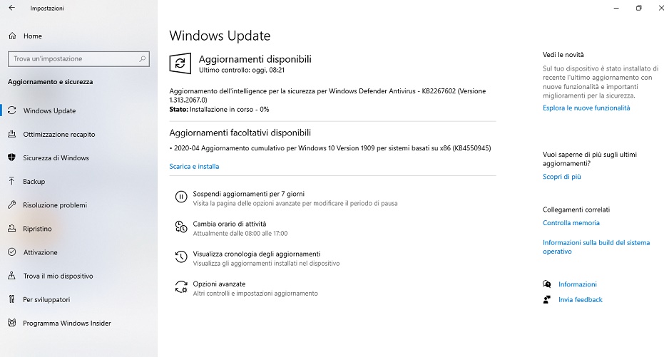 Inoltre, se vi ricordate, la versione 1909 è uscita col comunicato che diceva che le nuove funzionalità erano state veicolate di nascosto con le patch precedenti ma abilitate solo con l'update ufficiale alla versione 1909, il quale si limitava praticamente ad accendere l'interruttore a roba già presente nel nostro PC