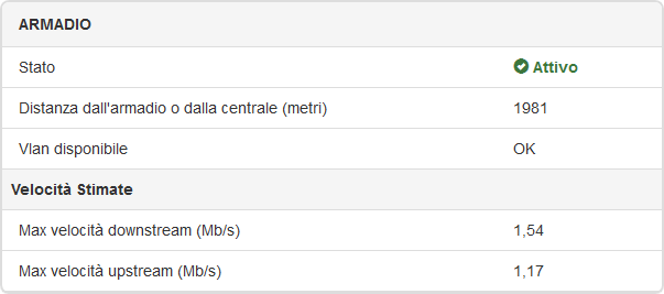tieni presente che quelle stime sono fatte "sulla carta" tenendo conto di valori medi dei cavi e delle lunghezze riportate nel database. Quindi non farci affidamento più di tanto se sei lontano. Nel mio caso: ![]() ![]() Codice: