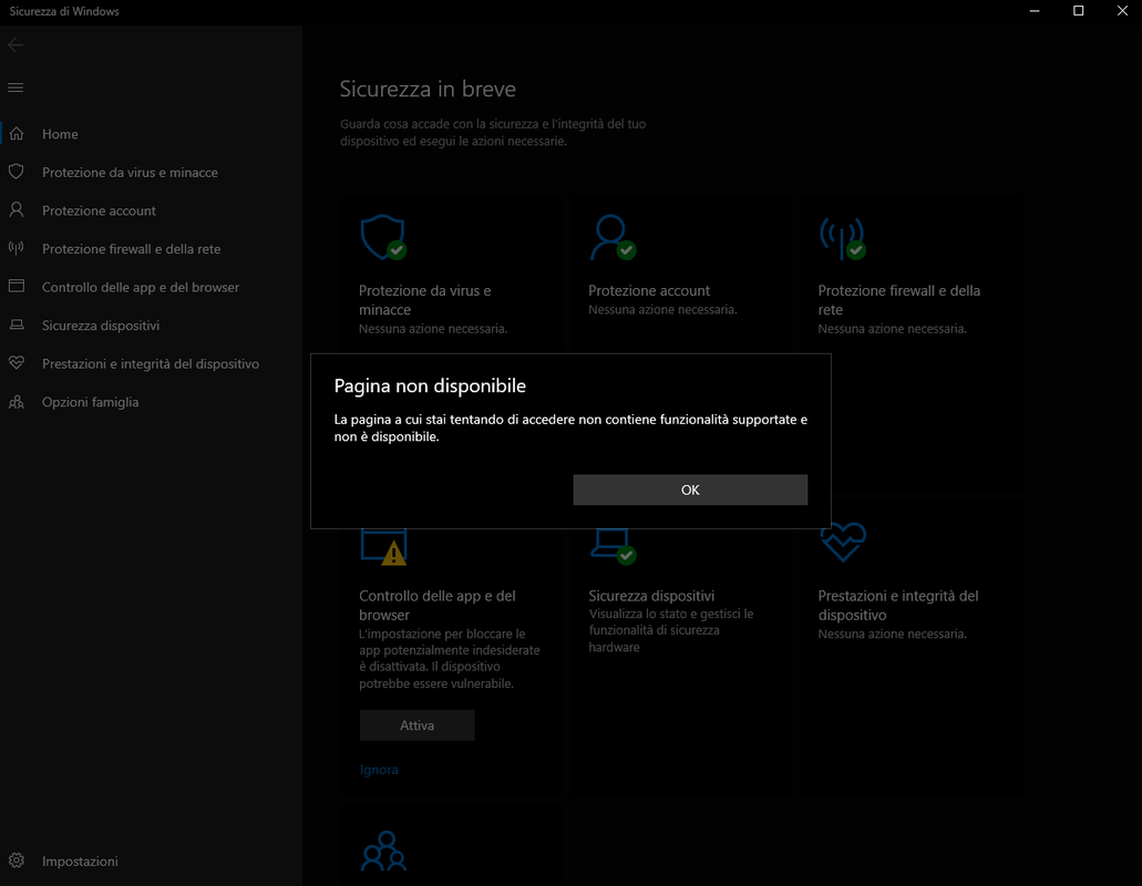 Anche a me da la stessa schermata di jeremj , io non uso Windows Defender come AV predefinito. Ho Nod 32.