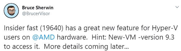 AMD Nested Virtualization Support (considerate che prima era solo prerogativa Intel). Virtualizzazione annidata=a grandi linee, VM che gira in una VM che a sua volta gira sul sistema reale Ultima modifica di LL1 : 10-06-2020 alle 19:09. |