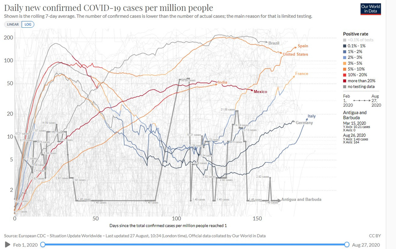 Nuovi casi per milioni di abitanti,molto interessante: 7 day average