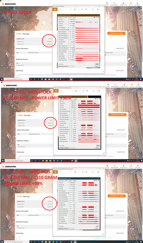 Qui ti pubblico una comparazione che feci con 3DMark e con GPU-Z per tenere sotto controllo le temperature dei chip. ![]() La configurazione 1 e con la scheda stock ad aria, la configurazione 2 con un overclock "leggero" a 2100 Mhz e powerlimit a 50%. La configurazione 3 "sarebbe" dovuta essere la definitiva con power limit a +90% e GPU a 2250 Mhz ma purtroppo ho notato che nell'uso quotidiano con i giochi non era perfettamente Rock Solid in sessioni di gioco oltre i 30-40 minuti, quindi sono poi "atterrato" poco dietro sui 2181 Mhz mantenedo tutte le altre caratteristiche inviariate. Lo screen comunque credo sia buono per vedere come scalano le prestazioni con diversi livelli di OC. Se vuoi parametri specifici di MSI Afterburner posso scaricarlo e fare screen nuovi, dimmi tu.