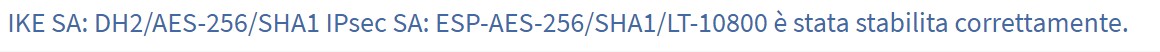 La connessione VPN con vpnHome[5.90.228.160] IKE SA: DH2/AES-256/SHA1 IPsec SA: ESP-AES-256/SHA1/LT-3600 è stata stabilita correttamente