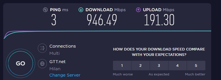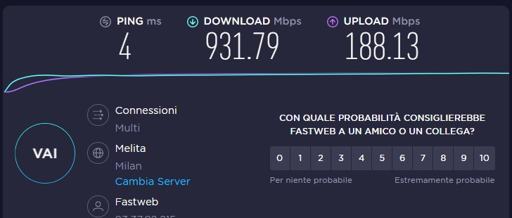 Firmware 7.20 946/191https://i.postimg.cc/VvLxqw9q/today5.jpg 897/190 i testo sono invece mentre mio figlio gioca a fortnite sulla switch (e ho comunque una marea di dispositivi dietro smart) https://i.postimg.cc/bryhmkP2/today3.jpg 852/191 https://postimg.cc/Ny1jRc1q/d6da490c https://postimg.cc/DJHGY54q Sono sicuro di aver fatto un test con iperf per testare il cavo di rete nuovo (30mt) quando avevo la 7.19 beta e lan to lan raggiungevo i limiti della gigabit (940mbit circa) Questo è un test fatto e postato pagine fa anche su questo forum (se non ricordo male) firmware 7.19 https://i.postimg.cc/3NZxdh7j/fastweb2.jpg Direi quindi che almeno il mio 7530 non soffra di cali di prestazioni Ultima modifica di alello80 : 04-10-2020 alle 18:15. |