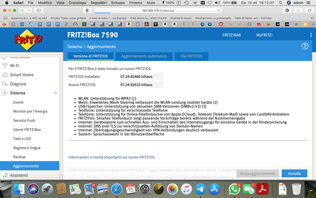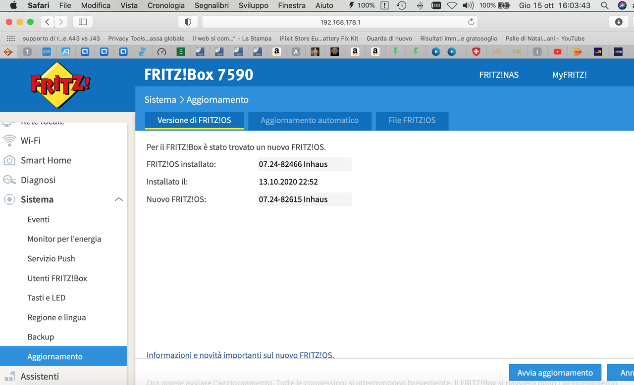 Nuova versione segnalata ed installata. Diversamente dalla precedente che il FRITZ!Box non segnalava. Una ragione di sicuro esiste per questo comportamento.. non ritengo sia dovuta al caso. Probabilmente quella di prima andava magari a correggere una funzione non attiva sul mio 7590... ipotesi mia. Già in precedenza con le inhaus avevo notato un comportamento simile. Io mi affido alle segnalazioni del 7590 essendo in ambiente MAC e quindi non usando Juischeck. Saluti, buona giornata ![]() ![]()