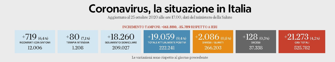 E per quanto riguarda le scuole, non è lì il problema del contagio, ma il prima, per chi usa i mezzi di trasporto pubblico (in genere studenti superiori, al massimo delle medie), ed il poi, aggregazione all'uscita della scuole. Se chiudi la scuola, pensi che gli studenti se ne staranno buoni a casa dopo aver fatto quelle minime ore di didattica a distanza (che non sono 5 ore)? Usciranno comunque e si ritroveranno altrove, ancora più facile se i genitori non sono a casa. In Europa la tendenza più diffusa è stata la limitazione di apertura di bar e ristoranti, numero di persone ai tavoli, niente feste private e relative a cerimonie (ho messo il link nei giorni scorsi). Non la chiusura delle scuole ma la didattica a distanza per quelli delle superiori (l'unica eccezione è la Repubblica Ceca che ha chiuso tutto per ora fino al 3 novembre).