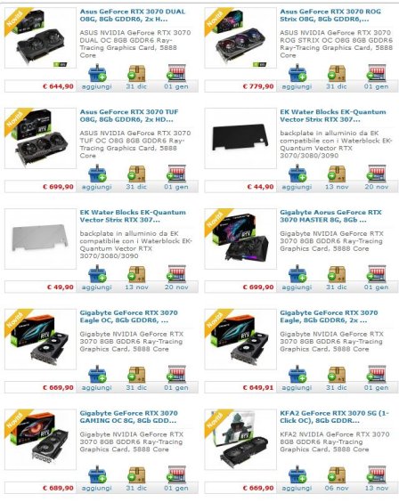 Shop Svizzeri hanno le rtx3070 disponibili, prezzi leggermente alti 569 a 659chf