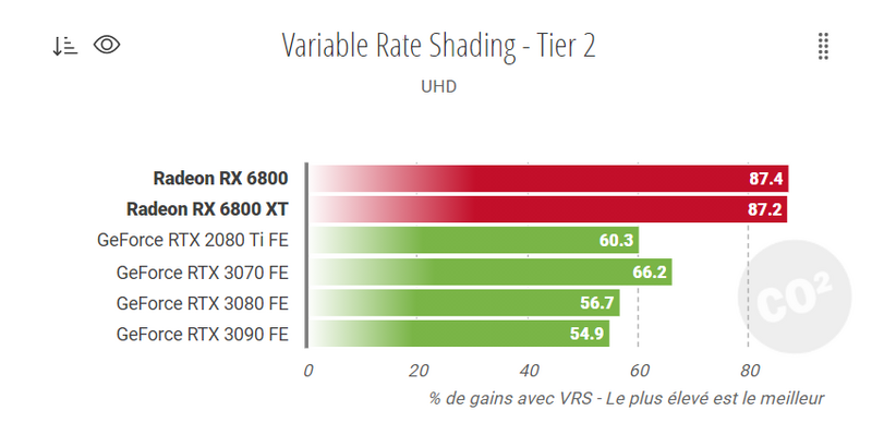 il VRS permette di ridurre lo shading nelle aree dell’immagine che non impattano sulla qualità visiva, permettendo così di ottenere maggiori prestazioni e ridurre i requisiti di gioco. Un tasso di shading più alto significa maggiore fedeltà visiva, ma un impatto più alto sulle prestazioni; un tasso di shading più basso l’opposto, una minore fedeltà visiva ma prestazioni superiori. Quello che faceva pascal con le compressioni banda, ma senza perdita però. Questo può portare svariate % di frame. Da notare le vecchie AMD. ![]() Inoltre Ampere, pare avere problemi con questo VRS tier 2.