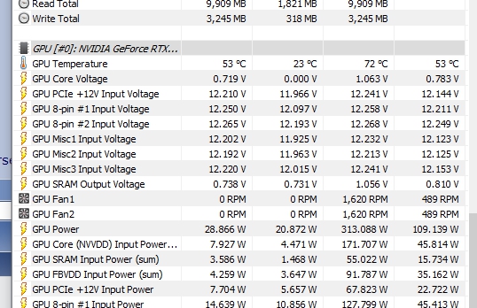 È un, chiamiamolo, problema di progettazione delle evga che distribuisce a membro di segugio la corrente , caricando troppo lo slot pcie , arriva a 66w e blocca la possibilità di attingere di più dai 2 rail. Pensa che io quando arrivo a 450w, dal pcie ho un consumo di 37w