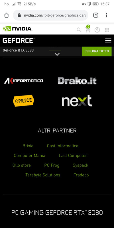 https://www.nvidia.com/it-it/geforce.../rtx-3080/#wtb rivenditori ufficiali in italia non ne vedo. ci sono solo rimandi ad akinf... quindi presumo che almeno questo lo sia, l'altro no. sbaglio? |