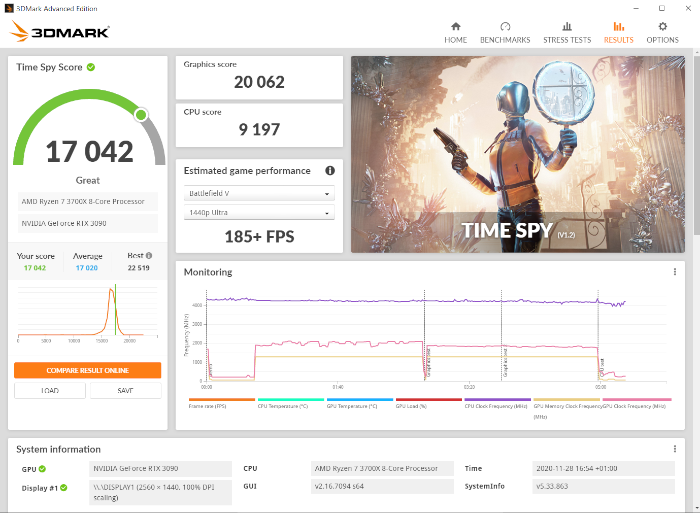 Una 3080 OC con un buon PL arriva sui 11900-12200. Una delle poco 3900 che ho visto qui sul topic come bench stava a 12950, si fatica ad arrivare a 13mila.... onestamente 14mila una 3090 arriva con OC pesante e PL 450-500 watt imho. Questo invece è in linea ?