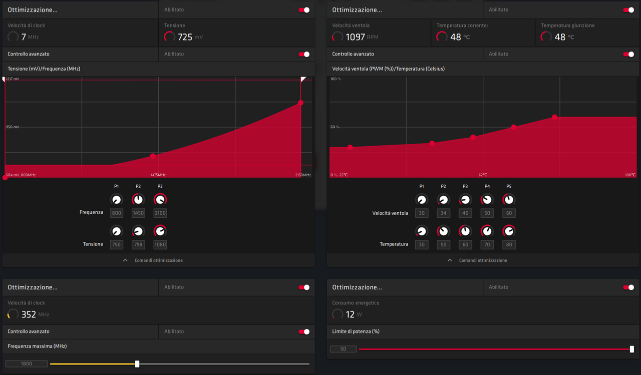 Ora non faccio qui il riassunto (tra l'altro la cosa si palesò da una certa versione dei driver AMD, per via di certe scelte), ma di dico come risolvere (tenendo presente che molto probabilmente il problema è nei valori di treshold dei partner). Quello che devi fare è: scaricare MoorePowerTool, dal sito di Igor, scaricare GPUZ, copiare il bios con GPU Z Eseguire come amministratore MPT e caricare il bios salvato Alla voce "Fan" in alto impostare PWM Minimum al 10% Cliccare "Write SPPT" Riavviare il PC A questo punto dopo il riavvio potrai impostare nei driver il 10% nel tuo profilo curva (io ho messo 12 e 15 nei primi due step) Le ventole andranno sempre ma a poco e non avrai più l'odiosissimo WHOOOOOOSSSHHHH ogni 7-8 minuti L'operazione va fatta ad ogni cambio dirver Io sono stato molto critico sulla scheda, volli provare AMD dopo tanti anni in occasione di un refresh del PC prima di passare ad AM5 o equivalente intel ad inizio 2022 (dopo che i prezzi saranno stabili) ma devo ammettere che è un buon prodotto. Il mio problema, da maniaco del silenzio (compro di solito la VGA più silenziosa ad un dato livello di performance, non quella che fa più fps), era proprio questo. Certo è una situazione non ideale, un minimo ma davvero un minimo la VGA si sente, ma è accettabile Goditela che è una buona scheda, e, come detto, molto probabilmente non è AMD responsabile della cosa (per quanto avrebbe potuto lasciare i valori suoi come in origine e non prendere quelli dei partner...) Ultima modifica di kliffoth : 05-12-2020 alle 19:25. |