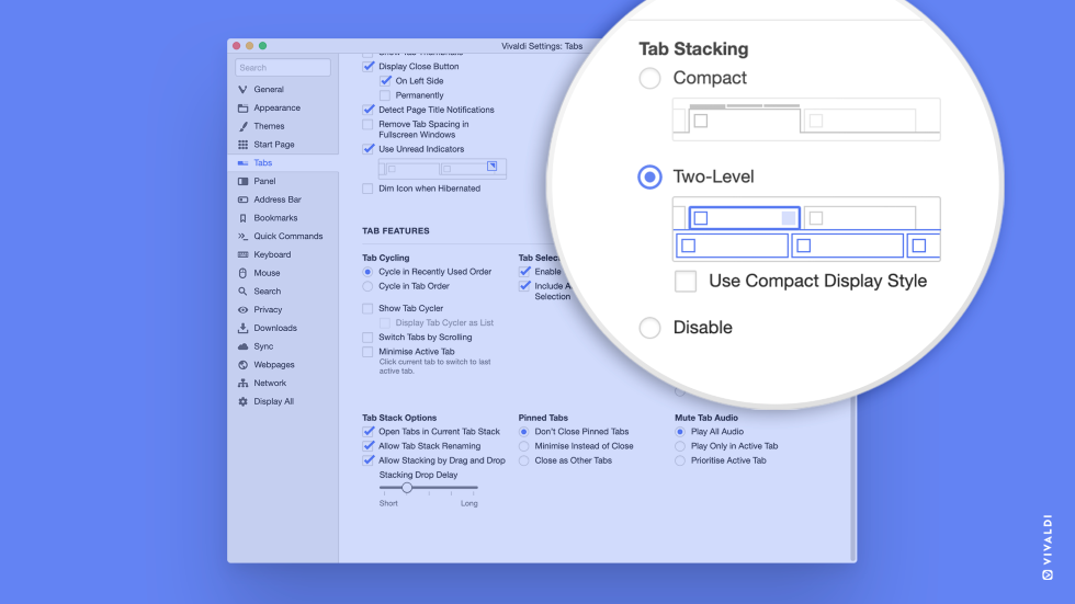 -------------------------------------------------------------------------------------------------------------------------------------------------------------------------------------------------- 28/01/2021 Vivaldi takes tabs to the next level, literally Il primo browser a introdurre un secondo livello nella barra delle schede per gestire i gruppi di schede: Gruppi di schede a due livelli su computer Windows, Mac e Linux. ![]() La soluzione a troppe schede in una barra delle schede è qui - una seconda barra delle schede in Vivaldi. Sei anni fa, nella prima apparizione pubblica di Vivaldi su desktop e notebook, abbiamo svelato Gruppi di schede - la possibilità di raggruppare e gestire insieme le schede. Oggi, introduciamo Gruppi di schede a due livelli, una caratteristica che porta la nostra funzionalità delle schede al livello successivo, letteralmente. Con Gruppi di schede a due livelli, nella nostra ultima versione Vivaldi 3.6, le schede raggruppate sono visualizzate in una seconda barra delle schede. Questa funzionalità, prima nel suo genere, apre un nuovo modo di visualizzare e gestire le schede su desktop e notebook. Le schede sono una parte essenziale della navigazione, ma molti lottano quando si tratta di organizzare e gestire le schede. Nel corso degli anni, abbiamo rafforzato la nostra completa funzionalità di schede con caratteristiche moderne e integrate che si adattano al modo in cui lavorate oggi (ancora di più in tempi di lavoro a distanza). La nostra pletora di caratteristiche delle schede come Gruppi di schede, Schede affiancate, Schede verticali e Schede auto-raggruppanti ti aiutano a visualizzare, gestire e navigare tra le schede nel browser facilmente. ![]() Spiegazione del Gruppo di schede a due livelli Video Gruppo di schede a due livelli I Gruppi di schede in Vivaldi ti aiutano a organizzare un gruppo di schede trascinando una scheda sull'altra. Nell'implementazione originale di Vivaldi, i gruppi non occupano più spazio di una singola scheda. Questo mantiene la finestra del browser ordinata ed è un modo efficiente per accedere rapidamente a un gran numero di schede. Chiaramente, l'obiettivo è rimanere compatti. Mentre Gruppo compatto è ancora un'ottima visualizzazione per quelli di voi che desiderano massimizzare lo spazio sullo schermo, la nuova vista di Vivaldi - Gruppo di schede a due livelli - va una tacca più in alto. ![]() Raggruppamento di schede - Compatta e a Due livelli Cliccando semplicemente su un gruppo, si espande e mostra il contenuto dello stesso, con schede a grandezza naturale su una nuova riga. Avere schede a grandezza naturale significa che puoi manipolarle come qualsiasi altra scheda, usando gli stessi metodi per aprire, chiudere, attivare, spostare o selezionare le schede all'interno di un gruppo. ![]() Gruppi di schede a due livelli visualizzazione laterale Puoi organizzare Gruppo di schede in qualsiasi modo ti piaccia, mantenendo una panoramica completa - trascinare, ibernare, silenziare e persino rinominare secondo necessità. Tutte le schede sono immediatamente accessibili, senza la necessità di cambiare costantemente finestre, profili o spazi di lavoro. La funzione è abilitata per impostazione predefinita e si può facilmente passare tra Compatta e Due livelli. Basta andare in Schede nelle Impostazioni di Vialdi. ![]() Passare dalla visualizzazione Compatta a quella a Due livelli nelle Impostazioni di Vivaldi Gruppi di schede a due livelli: migliore visualizzazione, più controllo La nuova funzione è utile per le persone che vorrebbero visualizzare le loro schede raggruppate a grandezza naturale. Funziona sia che le schede siano posizionate in alto, in basso o di lato. ![]() Vista verticale dei Gruppi di schede a due livelli Il nuovo secondo livello rende la riorganizzazione dei gruppi o la creazione di nuove schede all'interno di un gruppo un gioco da ragazzi. Per esempio, il pulsante "+" sul nuovo livello permette di creare facilmente delle schede all'interno del gruppo. La funzione offre tutti gli altri vantaggi delle schede di dimensioni normali, come titoli di pagina più facili da leggere, notifiche delle schede e (se abilitate) miniature delle schede. Inoltre, i Gruppi di schede a due livelli possono essere bloccati, il che evita di cambiare l'altezza della visualizzazione della pagina quando si passa da una scheda all'altra e rende più semplice creare nuovi gruppi da qualsiasi scheda. Gestione delle schede di Vivaldi: schede per una vita organizzata ![]() Diventa un maestro delle schede con la funzionalità integrata delle schede di Vivaldi I vasti strumenti di gestione delle schede in Vivaldi sono divertenti, efficienti e gratificanti per gli accumulatori di schede. Avete il controllo delle schede. I nostri strumenti integrati ti impediscono inoltre di dipendere da componenti aggiuntivi di terze parti. C'è una varietà di opzioni: dal mettere le schede in alto, in basso o di lato, all'arrotondare gli angoli delle schede. La struttura e il design accurati avvantaggiano tutti, dai nuovi utenti di Vivaldi ai professionisti più esigenti. È possibile avere una visione a schermo suddiviso di più siti con Affianca schede di Vivaldi o visualizzare facilmente le schede aperte in stile albero nel Pannello finestra. Il passaggio da una scheda all'altra è semplice con Carosello schede - la scorciatoia da tastiera Ctrl + Tab ti permette di scorrere le schede aperte e visualizzarle come miniature (il carosello orizzontale), o come una lista di titoli (il carosello verticale). Per una navigazione veloce, è possibile utilizzare le scorciatoie da tastiera preimpostate per i comandi relativi alle schede o assegnare diverse scorciatoie da tastiera in base alle preferenze personali. Allo stesso modo, i gesti del mouse modificabili aiutano a eseguire comandi relativi alla scheda. Invece di cliccare su una scheda, cambiare scheda è più veloce attraverso i comandi rapidi. Ci sono diversi modi per aprire e chiudere le schede. Saltar