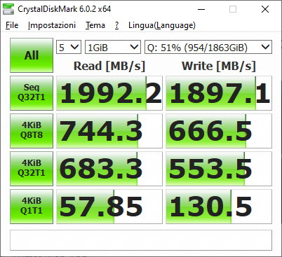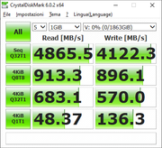 Anzi, un passo indietro... la tua frase "In realtà da bios c'è scritto che se c'è qualcosa sullo slot 2, lo slot 3 deve essere impostato a 2X... però il risultato è ottimo:" volevi dire che oltre a GPU, Hyper da 4 SSD, e adattatore SSD singolo hai altre schede negli slot PCIe ? Ho dato per scontato di si, altrimenti non capisco perché dovessi modificare qualche cosa Tornando al resto, premesso che se scrivo "x2" intendo dire "2 linee PCIe" e se scrivo "3.0" intendo "PCIe standard 3.0", la tua configurazione ottimale è quella che hai modificato nella tabella, che tu imposti lo slot PCIEX16_3 in automatico o allo standard 3.0 non importa, basta che non lo limiti a 1.0 o 2.0. Il vincolo invece, su questa MB, è che se metti una schedina sul PCIEX_X1_2, le linee dello slot PCIEX16_3 (quello sul quale dovresti aver messo l'adattatore SSD singolo con il Crucial) perde due linee, cioè scende da PCIe 4.0 x4 a PCIe 4.0 x2. Per questo motivo ti dicevo di spostare quella eventuale schedina x1 sull'altro slot x1, ma se non ne hai, non devi spostare nulla. Non toccherei più nulla comunque, le prestazioni sono eccellenti, e occhio che ti scrivevo il contrario, più il Crucial sarà pieno, meno andrà veloce, come tuti o quasi gli SSD, ma soprattutto questi tipo il Crucial. Il miglioramento in prestazioni immagino derivi dal fatto che lo avevi limitato allo standard PCIe 2.0, che è più lento. Comunque direi ottimo setup e ottima MB, stai usando quasi tutte le linee PCIe del Ryzen+Chipset Se vuoi aumentare i dispositivi, ti toccherà passare davvero da Ryzen classico alla piattaforma Threadripper ! Per la GPU, no, in teoria se la scambi con la Hyper non dovrebbe cambiare nulla, l'importante è che Hyper e GPU restino nei primi due slot lunghi, e non sul terzo dove ora hai l'adattatore SSD singolo.