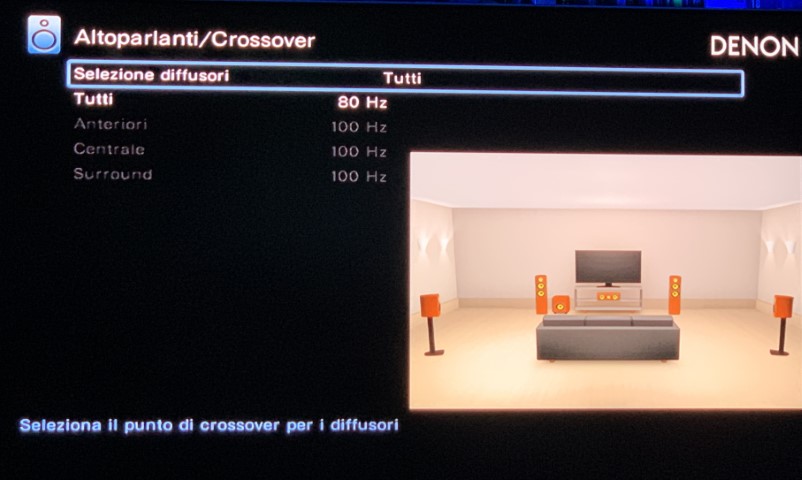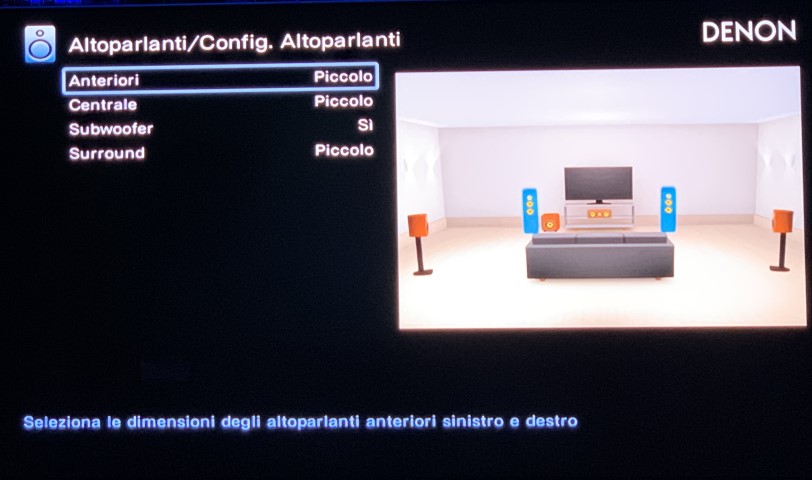Ho le casse in alto a dx è alto sx attaccate al muro con la staffa, mentre il sub lo ho frontale in basso a sinistra della Tv ma rialzato da terra di 30cm circa, le impostazioni dell’avr sono queste : (spero che le immagini non siano giganti, sto facendo tutto dal telefono, in caso me lo dire che le tolgo) ![]() ![]()