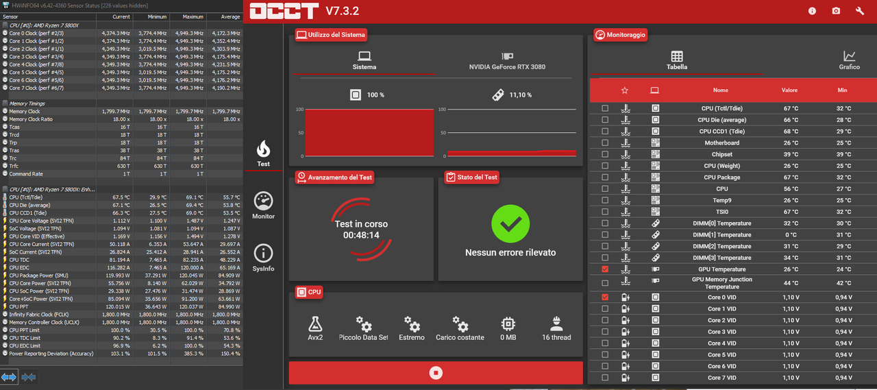 Ho letto molti commenti precedenti , ma ancora non riesco a capire bene . Parto col fatto che ho un custom loop GPU - CPU . 5800x ROG STRIX B550-F GAMING 32GB Ram Ballistix 3600 CL16 rtx 3080 trinity OC corsair hx850 6 corsair ML120 pressione statica so gia a prescindere che questo procio scalda parecchio , in piu missa che non ho un chip fortunato . All'inizo ho provato a mettere un oc fisso a 47 vcore a 1.33 LLC 3 pbo disable ram in profilo 6100 pt cinebench r20 max temp 76C quando vado a fare un occt small + avx2 crasha , a quanto pare ha bisogno di piu corrente . Allora oggi mi sono imbattuto con il pbo manuale ho fatto il seguente test : LLC level 3 pbo manual PPT 120 TDC 90 EDC 120 pbo multipler 2x curva negativa @ 30 pbo boost 100mhz crasha appena avvio il sistema ho provato : LLC 3 pbo manual ppt 140 TDC 110 EDC 140 pbo multipler 2x curva negativa @ 25 pbo boost 100mhz cinebench regge in multi in single crasha non riesco a trovare una quadra . qualcuno potrebbe darmi una mano per cortesia ? grazie mille AGGIORNAMENTO : provato diversi settaggi . per il momento sto a : LLC 1 pbo manual ppt 115 TDC 90 EDC 115 pbo multipler 2x curva negativa @ 25 pbo boost 100mhz prime95 senza problemi a 63C single core 4950mhz multicore Ultima modifica di spamer : 20-02-2021 alle 02:40. |