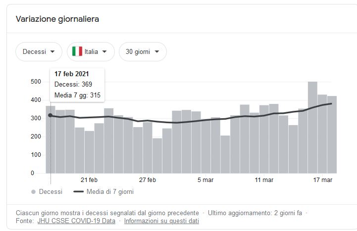 La gente è assopita nel sonno più profondo e non è più in grado di ragionare con la sua testa, sembra. Qui i telegiornali fanno veri e propri lavaggi del cervello. Di che cosa stiamo parlando? Della volontà di terminare una volta per tutte questa emergenza. La vera domanda è: c'è o non c'è questa volontà da parte dei governi? Perché a me sembra di vedere che, almeno in Europa, si stiano cercando scuse di ogni tipo per rimanere in questo limbo tra vita e non-vita, e la vita al tempo del COVID, non è vita, contrariamente a quanto qualcuno va sostenendo (ma d'altronde mi sembra che ormai la gente sia ben adattata anzi addirittura felice della "nuova normalità", termine osceno coniato da qualche moralizzatore che va in giro a raccontare che come vivevamo prima non andava bene e quindi dobbiamo cambiare tutto, chi l'ha deciso di grazia?). Qui si ignora o si fa finta di ignorare il problema: proteggere le persone a rischio di andare negli ospedali o peggio di morire. Oltre l'85% di questi sono Over 70, mentre noi vacciniamo a "categorie" che non hanno alcun motivo di essere vaccinate per prime. Professori, insegnanti, bidelli, avvocati, professori universitari e via discorrendo... Eccetto i medici, non c'è alcun motivo reale per cui bisogna PER FORZA vaccinare tutto il resto della popolazione oltre che coloro che sono veramente a rischio. Specie adesso che Astrazeneca può essere somministrato a tutti. L'immunità di gregge è sempre stata una chimera dal momento che di fatto il virus circola praticamente in tutto il mondo. Quindi basta prese per il culo. Vaccinassero tutti gli Over 70 e non rompessero più le palle alla gente con questo culto del COVID che ormai sta veramente rasentando il grottesco. Invece no, costretti a vivere l'eterno lutto A che serve la società organizzata se non a stare NELLA società? Tantovale essere monaci in Tibet. |