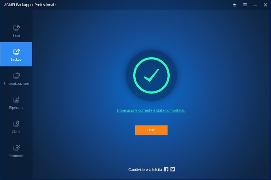 ho creato un Backup con Aomei Backupper . E' venuto benissimo . Ovviamente, quando creo i Backup, faccio sempre controllare che il Backup sia Integro, sennò.................è come non avere il Backup . Prima della successiva immagine, quando ha completato il Controllo del backup dei dati, esce la scritta > L' immagine è valida e integra Poi esce la finestra sotto
