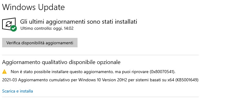 Non mi ripropone più, il kb5001649 !