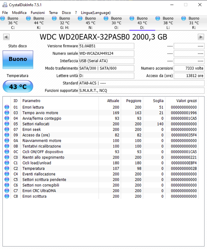 Allora è una periferica, che quando è collegata crea il problema . Collegane una alla volta e vedi se ci sono settori danneggiati o altro........con CrystalDiskInfo . Se vuoi posta la finestra con tutti i dati Smart visibili per ognuno dei WD, quindi posta 2 finestre, 2 screenshot