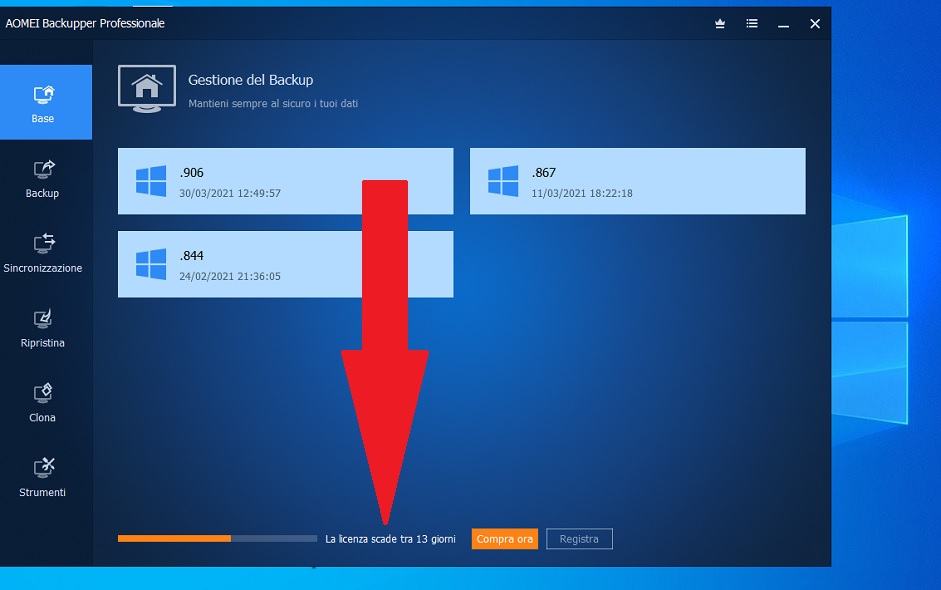 E adesso........ immediatamente mi creo un Backup con Aomei Pro gratissss Grazie a Styb Tanto, anche se mi fosse scaduto, avrei messo la Versione Freeware, che per quello che faccio io, basta e avanza