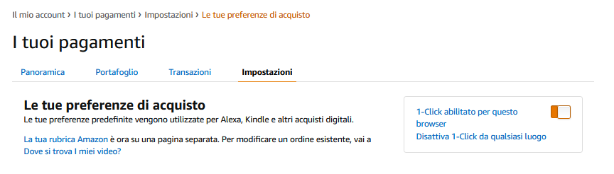 L'opzione 1-click c'è solo per contenuti digitali Kindle, per tutto il resto c'è il tasto "acquista ora" che comunque rimanda a una schermata riepilogativa dell'ordine che necessita di conferma.