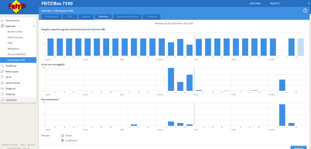 Salve, da quando ho aggiornato il Fritz all'ultima versione (07.27) ho l'SNR a 10 db (prima era a 6 db).