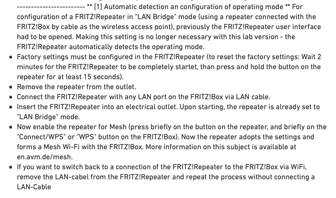 Perfetto, poi, caso mai, dagli priorità ed aspetta un po' che tutto si stabilizi. Se ti può essere utile, nellla UI del fritz.box, vai in sistema > eventi. Qui troverai i log di sistema... ogni cosa che succede, finanche i clients che passano dal master al repeater e viceversa, viene riportato qui.