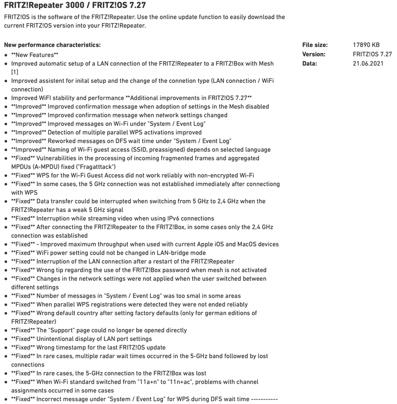 "Per il vostro FRITZ!Repeater 2400 [fritz-repeater-xxxxx] è disponibile il nuovo FRITZ!OS 07.27.