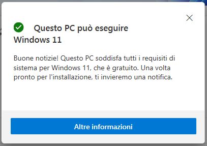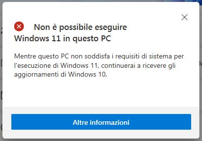 Il test ufficiale di Microsoft restituisce il messaggio che su quel pc non si può installare W11.