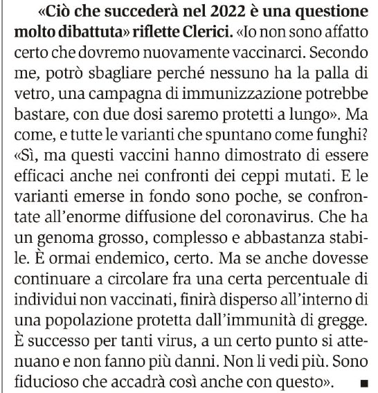 "Io non sono certo che dovremo nuovament vaccinarci...[omissis]". ![]() Mah! |