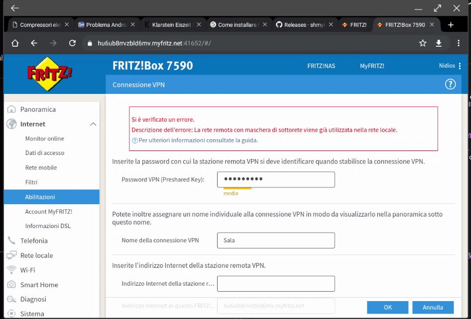 la VPN per il cell vedo che è stata già fatta, ho provato a crearne una nuova per accedere al PC collegato al Router fuori casa ma mi da questo avviso.