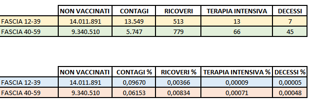 ![]() Guarda le percentuali. Ad esempio i contagi. Ti ho aggiunto una riga che rapporta i non vaccinati sui vaccinati. In pratica i non vaccinati si contagiano 6,6 volte in più rispetto ai vaccinati. E via discorrendo.