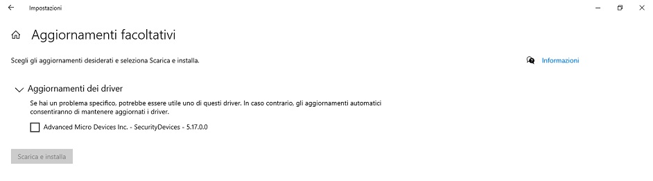 Al più, se ti esplode il PC, puoi sempre fare un rollback coi precedenti backup. Per quanto riguarda la scritta "se hai un problema specifico..." è il solito copia/incolla dei vari drivers update, essendo appunto facoltativi, quella dicitura ne fa sempre parte. PS: nello specifico è il drivers elencato nei dispositivi di sicurezza come AMD PSP Device. Post installazione, se lo espandi, vedrai che sarà appunto aggiornato alla 5.17.0.0