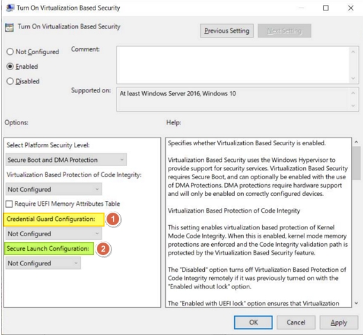 ¹ ![]() ² ![]() ![]() ----→NB: nell'ultima foto si vede chiaramente la dicitura in rosso "Questa impostazione è gestita dall'organizzazione". Ebbene, è figlia del fatto che (in gpedit→Computer Configuration→ Administrative Templates→System→Device Guard) è stato scelto "abilitato con blocco UEFI" (vedi anche l'immagine che segue) che impedisce di alterarne l'impostazione da remoto. ![]() NB 2: System Guard (avvio protetto nella maschera, cosa diversa da Secure boot), non è attivo nonostante il flag perché in VM che non è configurata a dovere altrimenti, su hardware di un certo tipo,... Ultima modifica di LL1 : 19-08-2021 alle 05:08. |