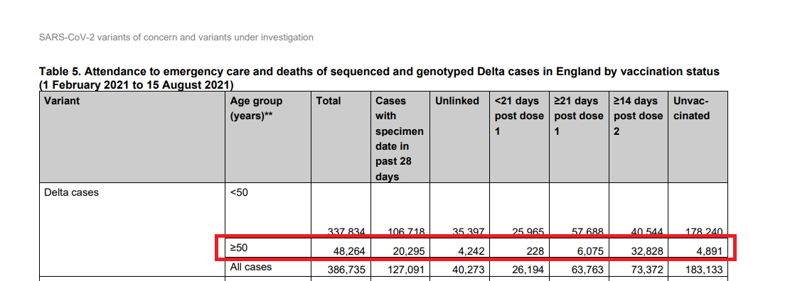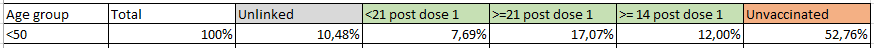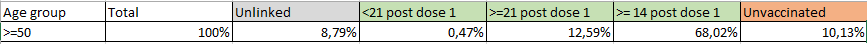 A guardare quella tabella, mi salta all'occhio il numero elevato dei casi tra vaccinati over 50 che hanno fatto da più di 14 giorni la seconda dose (32.828). Forse, guardando all'età, sono in gran parte quelli che sono stati vaccinati per primi e non sono più protetti come nei primi mesi. |