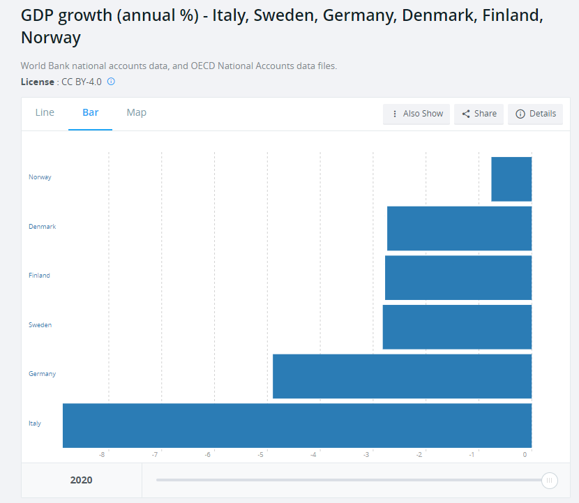 Il dato è questo: si è presa la Svezia come esempio negativo per ratificare la bontà delle scelte operate in casa nostra. È chiaro che un’informazione che non informa, ma deforma i fatti per piegarli a tesi precostituite è un problema. |