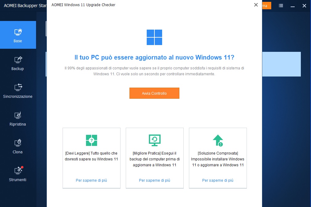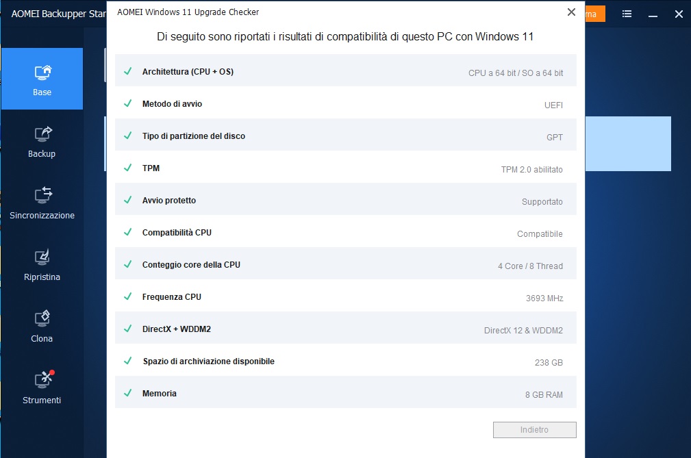 Aomei ha osato sfidare tallines Ho detto a Aomei: non starai mica scherzando no ? Ok, accetto la sfida Vincerò, vincerò. vinceròòòò io Ma va....... And the Winner is...... Tutto questo can can, per dire che la versione di Aomei 6.6.1, vi dà la possibilità di controllare se il vostro pc, è pronto per W11